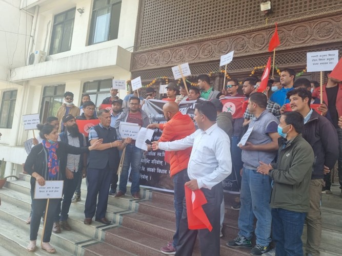 नेविसंघ संघर्ष समितिले विभिन्न माग राख्दै नेपाली कांग्रेस केन्द्रिय कार्यालयका मुख्य सचिवलाई ज्ञापन पत्र वुझाएको छ ।