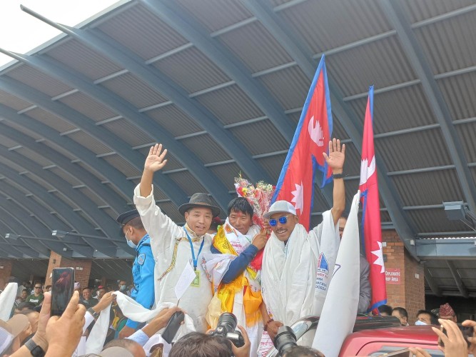 विश्वका ८ हजार मिटर भन्दा अग्ला १४ वटा हिमालहरुलाई दोश्रोपटक आरोहण गरी विश्वकीर्तिमान बनाउन सफल भएका आरोही सानु शेर्पालाई त्रिभुवन विमानस्थलमा भब्य स्वागत सहित नागरिक अभिनन्दन गरिएको छ ।