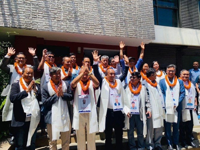 अध्यक्षका प्रत्यासी सापकोटाको समूहबाट वरिष्ठ उपाध्यक्षमा कर्मा शेर्पा, प्रथम उपाध्यक्षमा विष्णुप्रसाद लम्साल, द्वितीय उपाध्यक्षमा सनम शेर्पा, महासचिवमा राजेन्द्रप्रसाद सुवेदी, सचिवमा रिञ्जी जाङबु शेर्पा, कोषाध्यक्षमा गौतमराज वाग्ले र सहकोषाध्यक्षमा लाक्पा तेम्बा शेर्पाले उम्मेदावरी घोषणा गरेका छन् ।