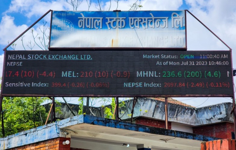 यो साताको पहिलो कारोबार दिन आइतबार पनि सेयर बजारमा ओरालो यात्रा कायमै रहेको छ । आइतबार सेयर बजारको परिसूचक नेप्से ९ दशमलब १९ मंकले घटेर २६ सय १७ दशमलब ९५ विन्दुमा झरेको छ ।